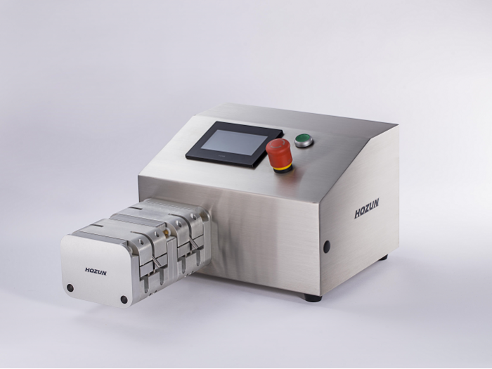本機型採用高扭力馬達,可處理 3000 cPs 以下 的中低黏度液體。蠕動幫浦的溫和傳輸特性,特別適合容易起泡或怕剪切的液體。